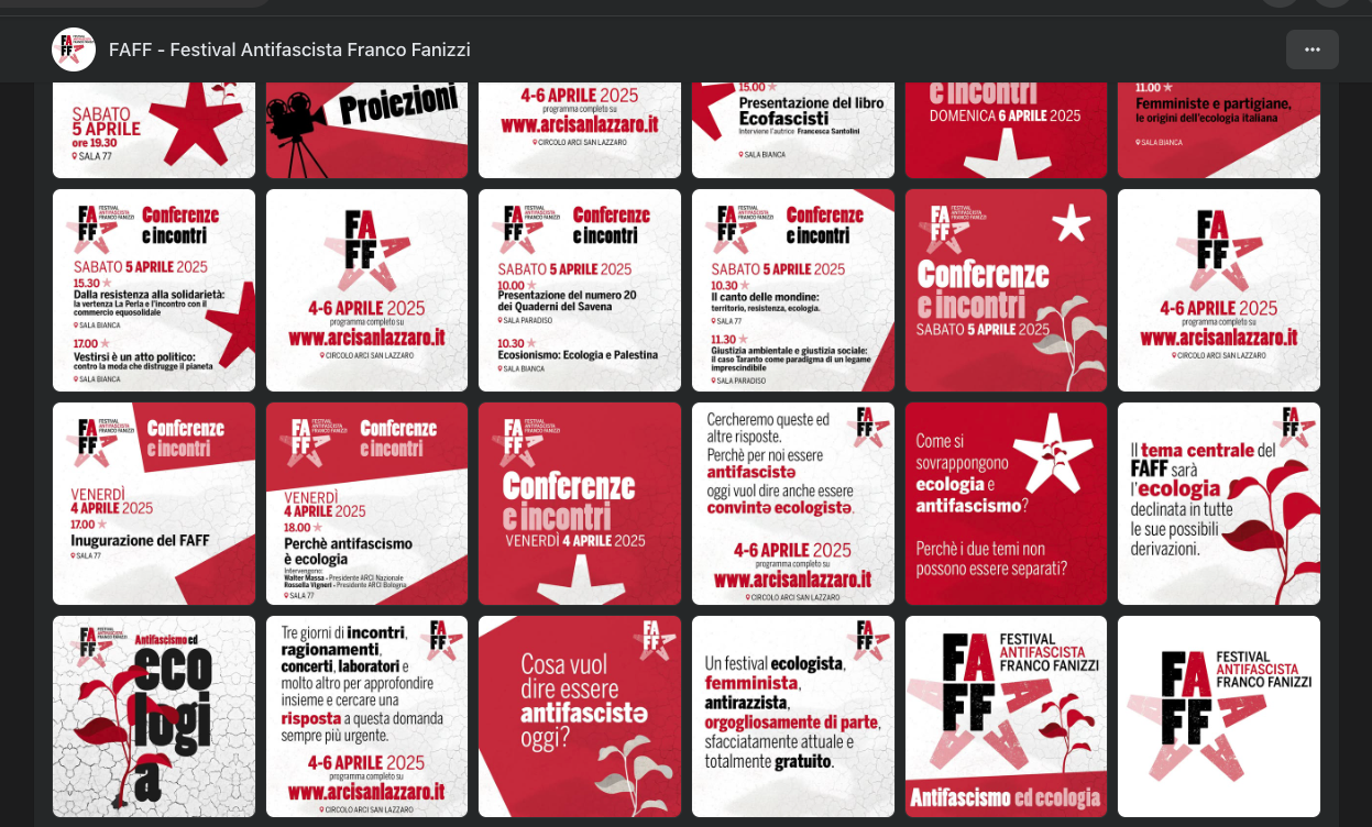 FAFF Progettazione e realizzazione grafica del logo e della comunicazione per il Festival Antifascista dedicato a Franco Fanizzi. Un festival antifascista, femminista, antirazzista, orgogliosamente di parte e sfacciatamente attuale. Navigazione articoli Previous Post Previous post: Comunicazione SCMO